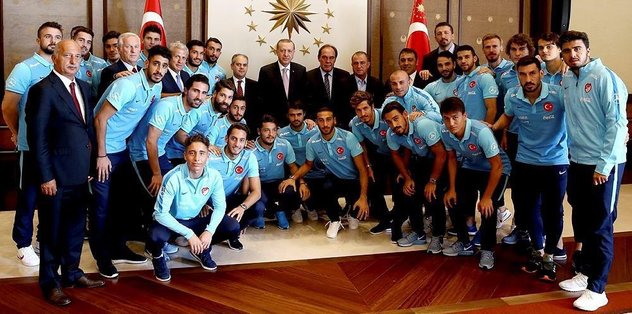 Cumhurbaşkanlığı Külliyesi'ndeki kabul yaklaşık 1 saat sürdü. Cumhurbaşkanı, Milli Takım'a Hırvatistan karşısında başarı dileklerini iletip, "Sizler ülkeyi temsil ediyorsunuz. Ay-Yıldızlı bayrağımızı taşıyorsunuz. O yüzden aldığınız her başarı kıymetli ve değerli. Yeter ki siz bayrağımızı en iyi şekilde dalgalandırın. Hep sizin yanınızdayım. Size inanıyor ve güveniyorum" dedi.