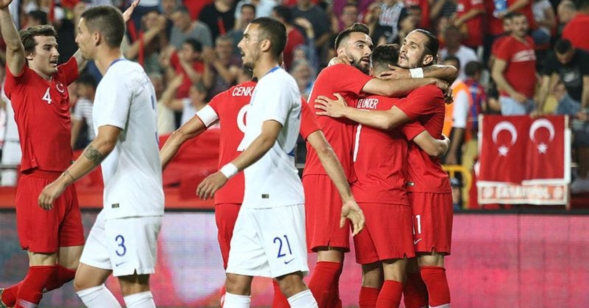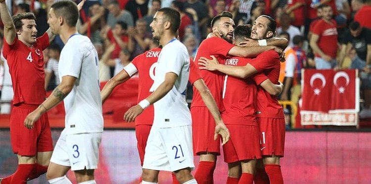 Karşılaşmaya etkili başlayan Ay-yıldızlı ekibimiz 11. dakikada Cengiz Ünder'in şık vuruşuyla 1-0 öne geçti. Golden sonra da baskısını sürdüren milliler 17. dakikada 4. kez milli formayı giyen ve Fortuna Düsseldorf'da top koşturan Kenan Karaman'ın kalabalık Yunanistan savunması arasından vurduğu şut ile farkı ikiye çıkardı ve ilk yarı bu skorla tamamlandı. Karşılaşmanın son saniyesinde Dimitris Kurbelis'in attığı golle karşılaşma 2-1 millilerimizin üstünlüğü ile tamamlandı.