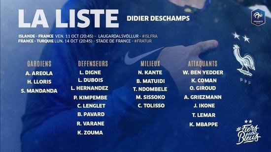 İşte Fransa Milli Takımı'nın Türkiye Milli Takımı ve İzlanda maç kadrosundaki isimler...