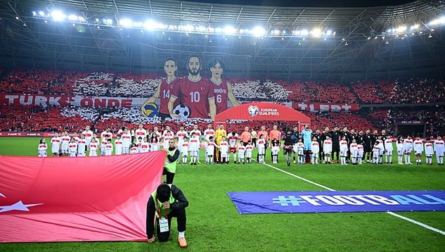 Gürcistan maçı öncesinde Kocaeli Stadyumu tribünlerinde müthiş bir koreografi gerçekleştirildi. 17 yıl sonra Kocaeli'nde 34 bin 829 kapasiteli Kocaeli Stadyumu'nda günler öncesinden biletleri tüketen ay-yıldızlı taraftarlarımız, tribünlerde kırmızı-beyaz Türk bayraklarıyla görsel bir şölen oluşturdu. Hodri Meydan tribününde gerçekleştirilen koreografide kırmızı-beyaz renklerdeki Türkiye haritası üzerinde A Milli Kadın Voleybol Takımı Kaptanı Ede Erdem, A Milli Erkek Futbol Takımı Kaptanı Hakan Çalhanoğlu ve A Milli Erkek Basketbol Takımı Cedi Osman'ın görselleri 3 boyutlu yapıldı. Görsellerin altında bulunan pankartta da 'Türk önde Türk ileri' yazısı yer aldı.