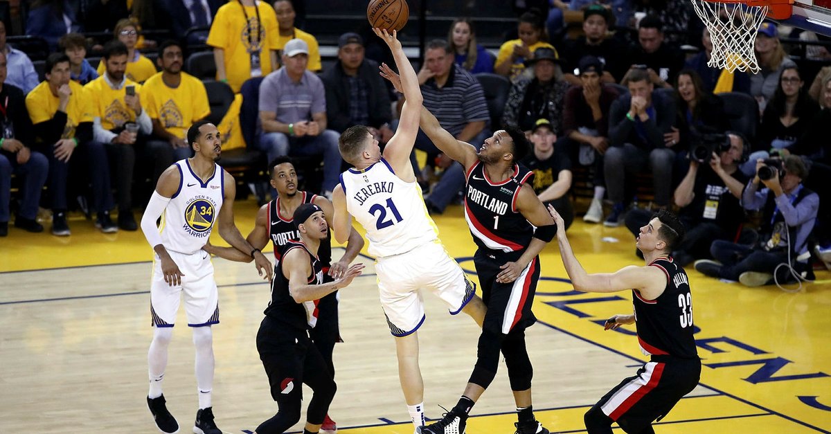 Amerikan Basketbol Ligi (NBA) Batı Konferansı finalinde Portland Trail Blazers'ı 116-94 yenen Golden State Warriors, seride 1-0 öne geçti.