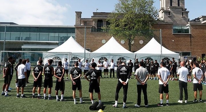 Real Madrid'li futbolcular da bugünkü antrenman öncesi Zidane'ın ölen kardeşi için bir dakikalık saygı duruşunda bulundular.