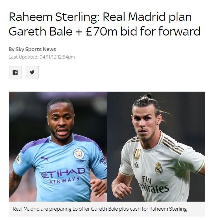 Real Madrid yetkililerinin İngiltere'nin Kosova ve Karadğ ile oynayacağı maçlara temsilci göndererek Sterling için rapor hazırlatacağı ifade edildi. Eflatun-beyazlı ekibin şu an için düşündüğü teklif Bale + 70 milyon sterlin...