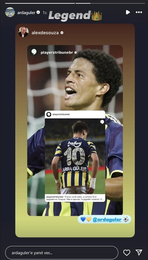 Son olarak Arda, Fenerbahçe'nin unutulmaz futbolcusu Alex de Souza için "Legend" yazısıyla bir paylaşım yaptı.