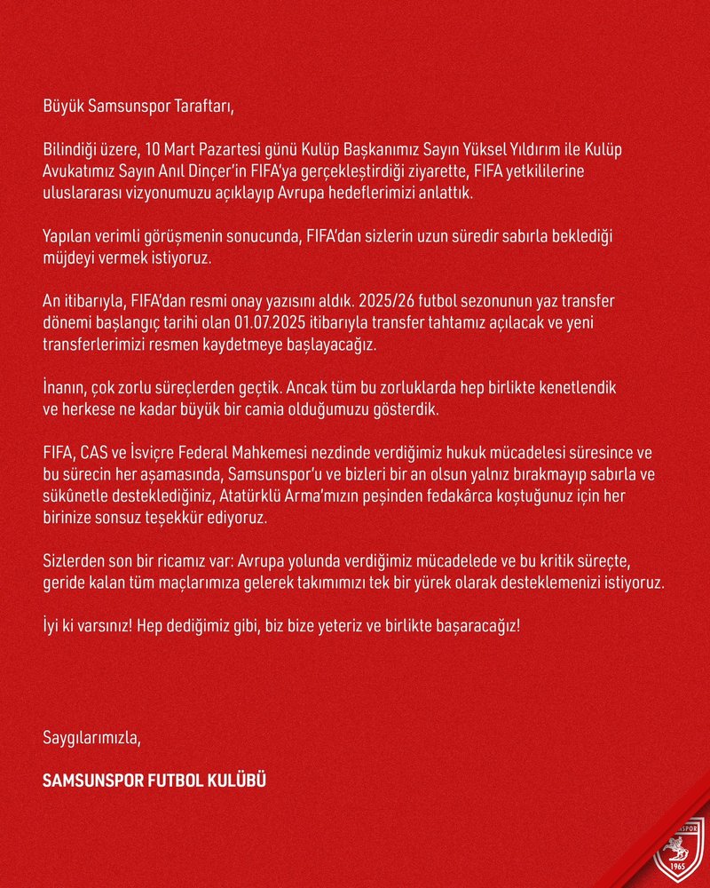 Kırmızı-beyazlılar son olarak transfer tahtasının açılacağı tarihi açıkladı.