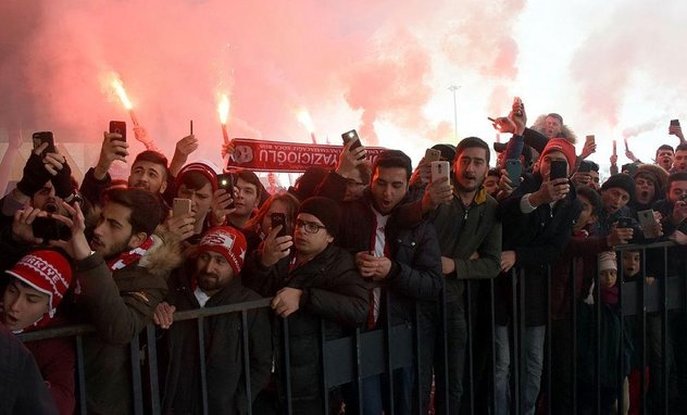 Brezilyalı yıldız oyuncuya, kalabalık bir taraftar grubu meşale yakarak tezahüratlarıyla destek oldu. Taraftarlar Robinho'ya çiçek verdi.