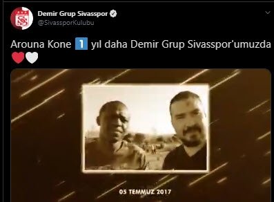Süper Lig'i 4. sırada tamamlayarak UEFA Avrupa Ligi bileti alan Sivasspor'da transfer çalışmaları sürüyor. Teknik direktör Rıza Çalımbay ile yola devam etme kararı alan Yiğidolar, iç transferde Arouna Kone ile nikah tazeledi. Kırmızı-beyazlı ekip, sosyal medya hesabı üzerinden yaptığı videolu paylaşımla, deneyimli golcü ile 1 yıllık sözleşme yeni sözleşme imzalandığını duyurdu.