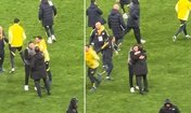 Sarı-lacivertli taraftarlar, maçın son bölümüne doğru sarı ve lacivert renkteki yağmurluklarını güvenlik görevlileri ve polislerle paylaştı.