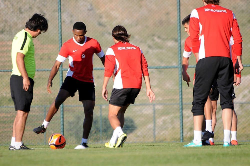 SüperLig ekiplerinden Antalyaspor'un yeni transferi Eto'o, antrenmanlarda çok neşeli gözükürken, arkadaşlarına taktik veriyor ve bazı pozisyonlarda uyarılarda bulunuyor. Davraz Kayak Merkezi'nin bin 600 rakımlı oteller bölgesindeki sahada gerçekleştirilen antrenmanda oyuncuların da Eto'o'ya "Baba" diye seslendikleri görülüyor. Teknik direktör Yusuf Şimşek ise "Eto'o konusunda hepimizin kafasında soru işaretleri vardı. (Acaba takıma uyum sağlayabilecek mi, kendisini takımdan üstün görecek mi?) diye sorular soruyorduk. İlk geldiği dakikadan itibaren tüm olumsuz düşüncelerimizi sildi" diye konuştu. Öte yandan yeni sezona hazırlanan Antalyaspor, bugün Isparta'da Atatürk Stadı'nda PTT 1. Lig ekiplerinden Denizlispor ile saat 22.00'de hazırlık maçı yapacak.