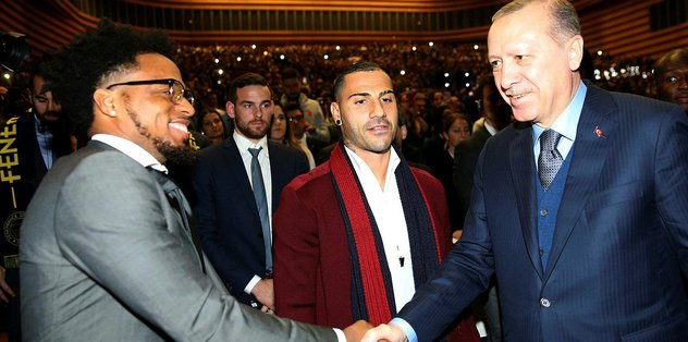 Çeşitli ülkelerden gelerek Türkiye'ye yerleşen spor, iş ve turizm dünyasından isimler Cumhurbaşkanı Recep Tayyip Erdoğan'ın da katıldığı "Anadolu Dünya Dolu" programında bir araya geldi. Spor dünyasından Eto'o, Quaresma, Muslera, Janssen, Bafetimbi Gomis, Moussa Sow, Bobby Dixon ve Ramil Guliyev gibi isimlerin yer aldığı organizasyonda önemli mesajlar veren Erdoğan, "Ülkemize gelen herkese gönlümüzü açıyoruz. Bizim göçmenler konusunda başımız ne kadar dikse, modern olarak tanımlanan ülkelerin başı o kadar eğiktir" dedi.