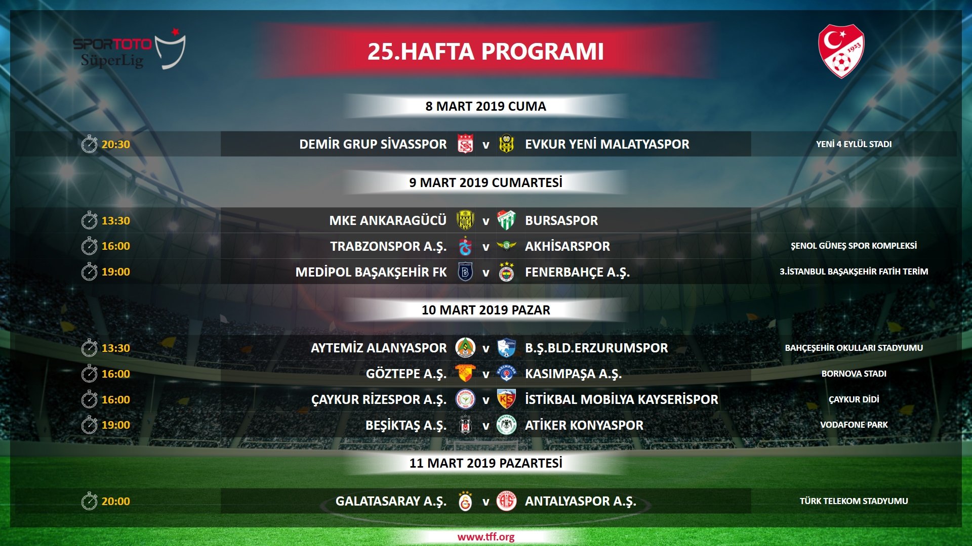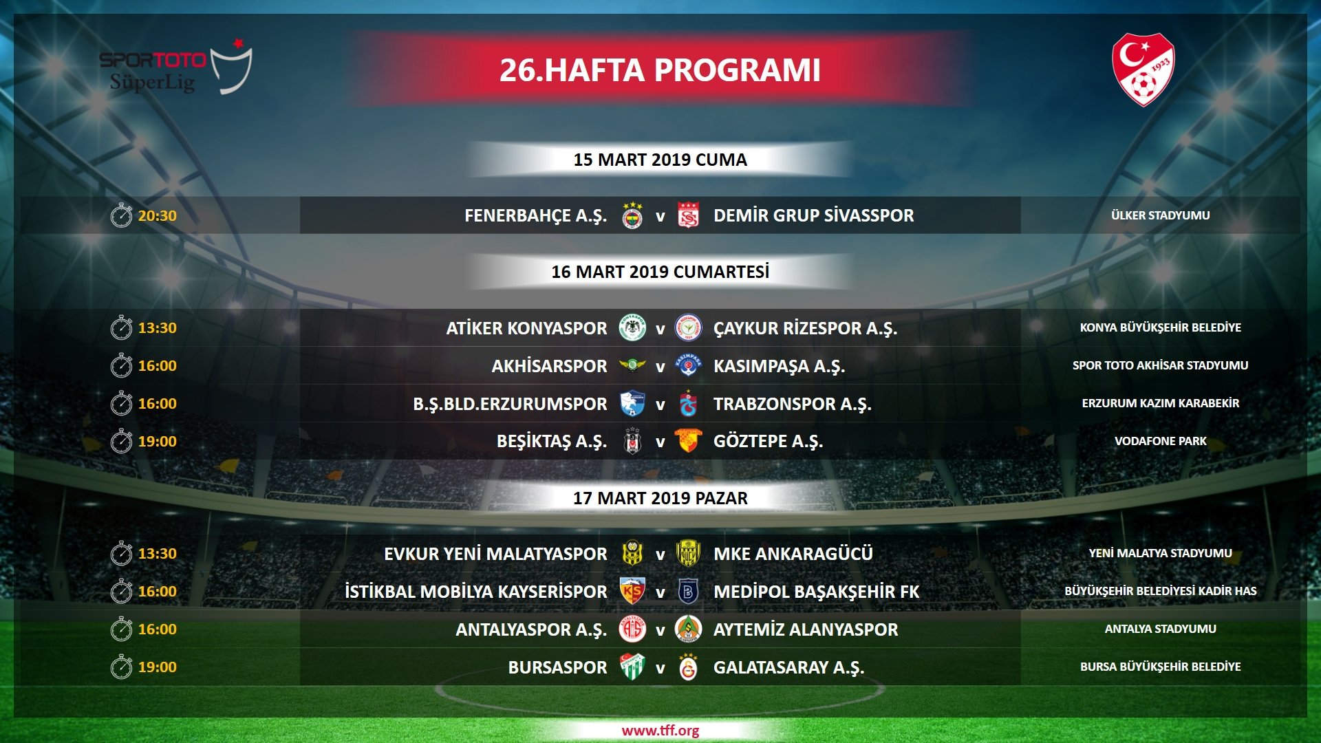 2018-2019 Spor Toto Süper Lig Lefter Küçükandonyadis Sezonu 25 ve 26. hafta müsabaka programları açıklandı.