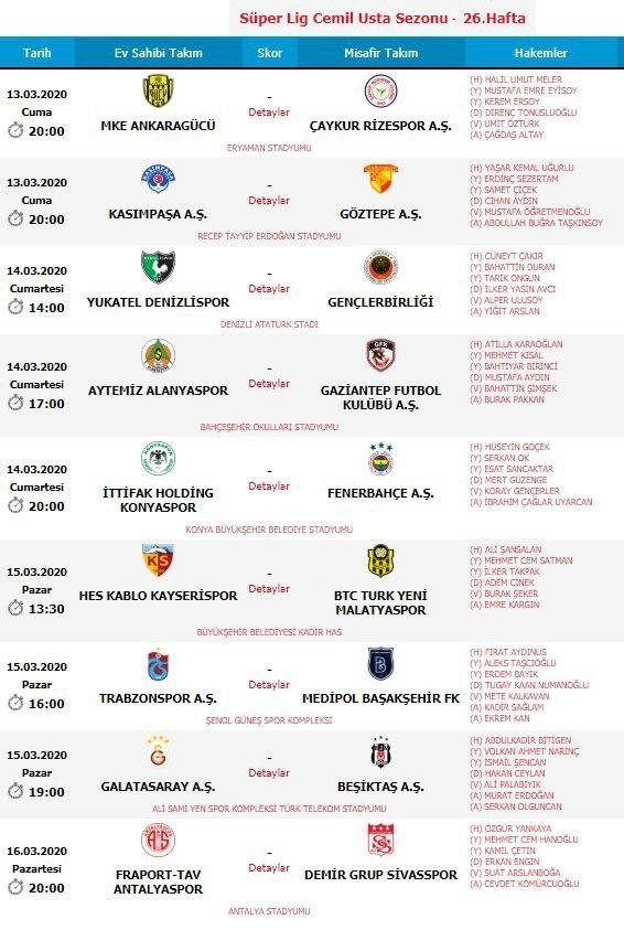 Zirveyi yakından ilgilendiren Galatasaray-Beşiktaş derbi mücadelesinin hakemi Abdulkadir Bitigen oldu. Haftanın diğer dikkat çekici karşılaşması olan Trabzonspor ile Başakşehir arasında oynanacak müsabakayı ise Fırat Aydınus yönetecek.