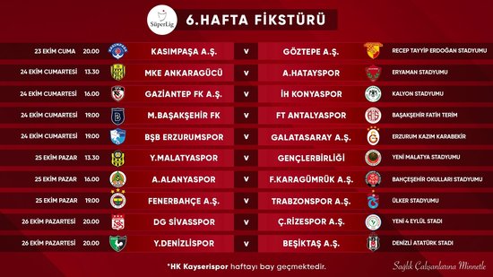 İşte Süper Lig'de 5, 6, 7 ve 8. haftanın programı: