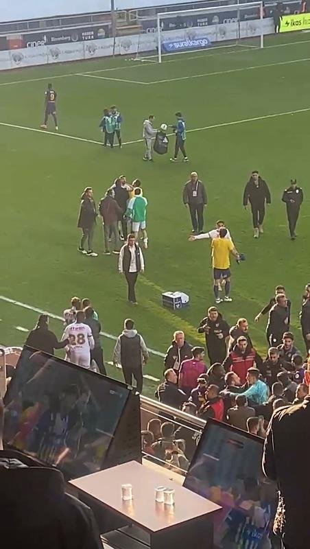 Sahada yaşanan olayların ardından Konyasporlu yöneticiler ile Eyüpsporlu taraftarlar arasında da kavga çıktı. Bitiş düdüğünün ardından protokol tribününde yer alan Konyasporlu yöneticiler ile Eyüpsporlu taraftarlar arasında çıkan arbedeyi polis güçleri zorlukla ayırdı. Kavga uzun süre devam ederken, taraftarları sakinleştirmekte zorlanıldı.