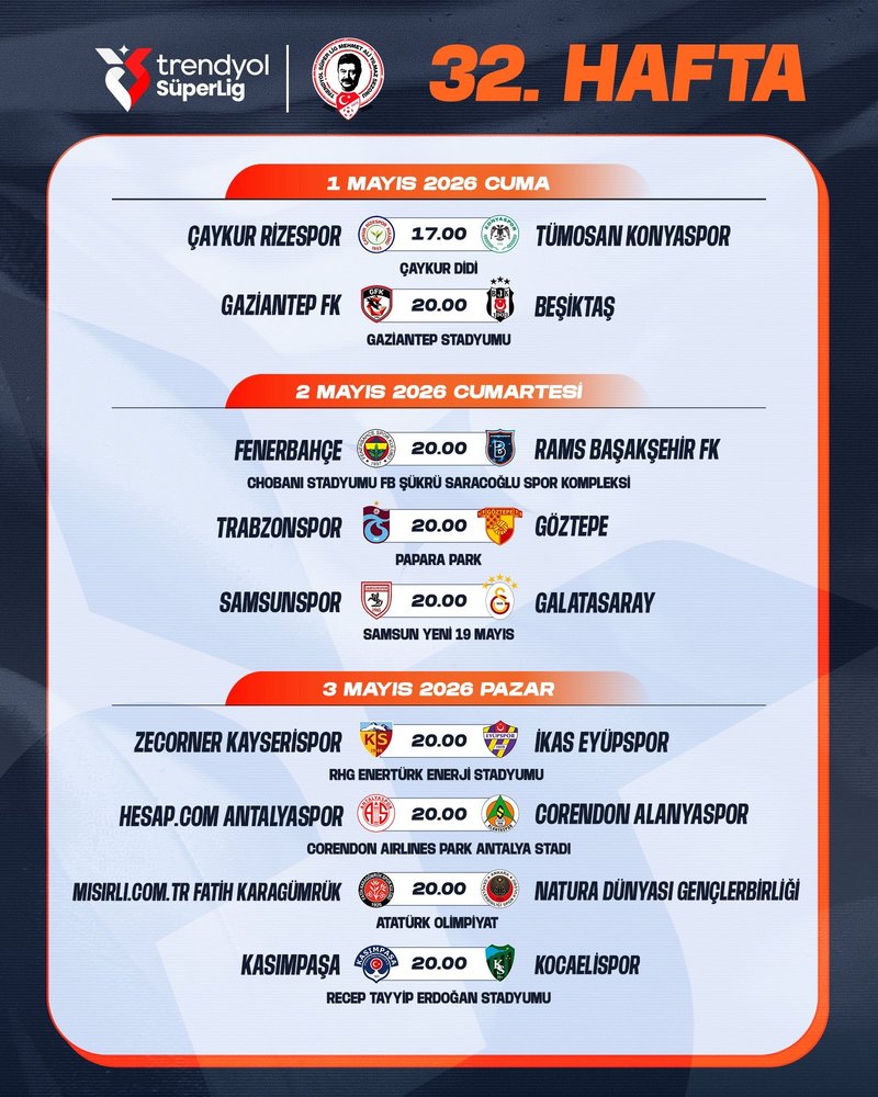 İŞTE TRENDYOL SÜPER LİG'DE 32. HAFTA PROGRAMI