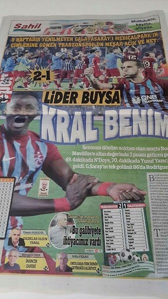 Yerel gazeteler, lider G.Saray'ı 2-1 yenen Fırtına'nın ortaya koyduğu mücadele ve skordan övgüyle bahsetti. Karadeniz "Namağlup lider olsan ne yazar, Trabzon böyle fiyakanı bozar" ifadelerine yer verdi. Günebakış "İşte Trabzon bu!", "Taraftarlar tribünde, bordo-mavililer sahada muhteşemdi. Derbide Fırtına G.Saray'ı yerle bir etti" , Taka "G.Saray'a Çalımbay. Yenilmeyen takım yoktur, Trabzonspor'la oynamayan takım vardır, Sonnokta "9 haftadır yenilmeyen G.Saray'ı Medical Park'ın çimlerine gömen Trabzonspor'un mesajı açık ve net: Lider buysa kral benim" yorumunda bulundu.