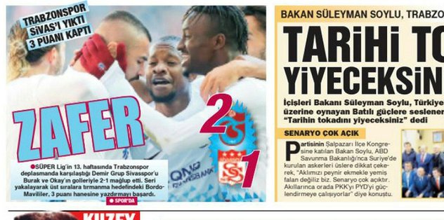 Yerel gazeteler, Trabzonspor'a övgü yağdırdı. Taka "Dev uyandı", Sonnokta "Bu fırtına dinmez", "Trabzonspor hem ilk deplasman maçını kazandı, hem de 2 maç üst üste kazandı", Kuzey Ekspres "Zafer", Karadeniz "Tertemiz forma tertemiz zafer' ile net mesaj verdiler. Günebakış da "Tertemiz zafer!" ifadelerini kullandı.