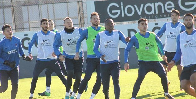 Bordo-mavili futbolcular, antrenmanda ısınma hareketlerinin ardından taktik çalışma yaptı.