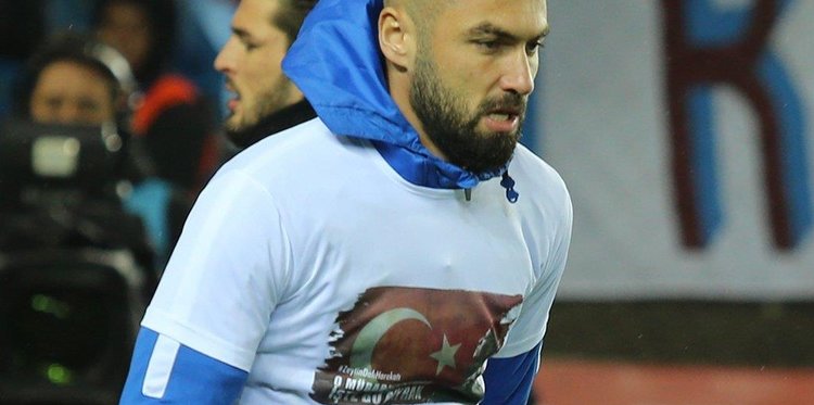 Trabzonsporlu futbolcular sahaya "O Mübarek Bayrak, İşte Bu Bayrak" tişörtleriyle çıktı.