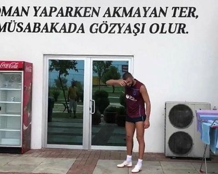 Sakatlığı nedeniyle takımdan ayrı olarak çalışan Burak Yılmaz'dan örnek paylaşım geldi. Golcü oyuncu, Mehmet Ali Yılmaz Tesisleri'ndeki bir binada yer alan, "İdman yaparken akmayanter, müsabakadagöz yaşı olur" yazısı önünde video çekip paylaştı. Burak videoda yazıyı gösterdikten sonra terini sildi. Bu paylaşım büyük ilgi gördü.