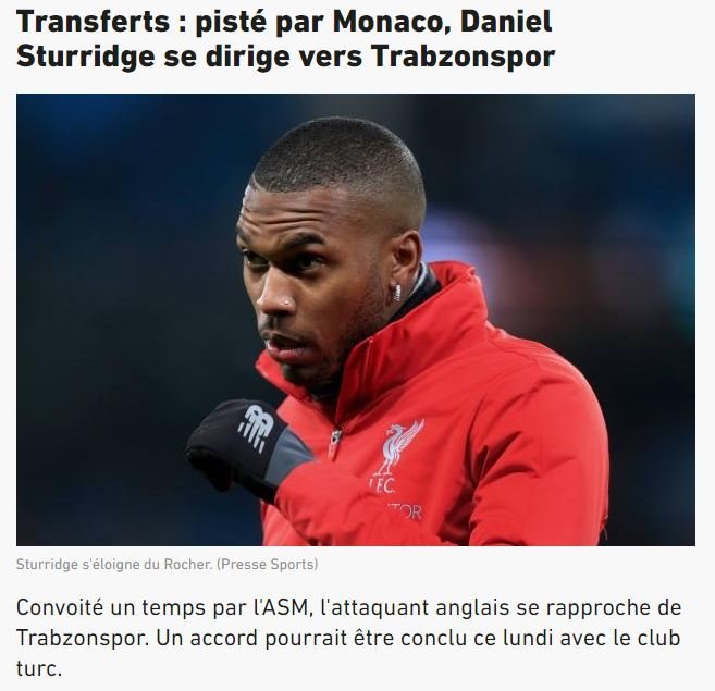 Fransız basınından L'Equipe'te yer alan habere göre Monaco'nun da Falcao'nun yerine düşündüğü İngiliz futbolcu, Trabzonspor'la anlaşmaya çok yakın. Bugün öğleden sonra oyuncuyla sözleşme imzalanabileceği ifade edildi. Sözleşmenin uzun süreli olacağı bilgisi de paylaşıldı.