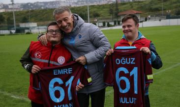 Down Sendromlu sporcu Emre Akman ve 100 mt Türkiye 2.'si Oğuz Bulut dün Trabzonspor'un idmanını ziyaret etti. Çocuklar ardından Uğurcan'a penaltı atarak hayallerini gerçekleştirdi.