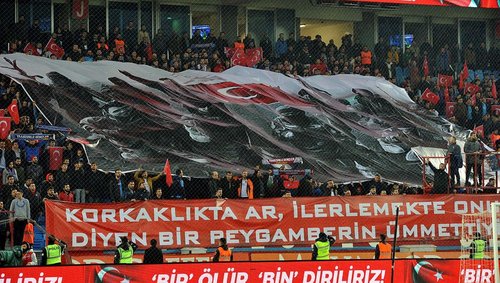 ŞenolGüneş Stadı'nda dün duygu anlar yaşandı. İki takım taraftarları da, futbolcular da İdlip'te şehit düşen askerlerimizi unutmadı. Tribünlerde, "Milletimizin başı sağolsun", "Bir ölür, bin diriliz" yazılı pankartlar yer aldı, uzun süre de, "Şehitler ölmez vatan bölünmez" sloganı atıldı. Bordo-mavili futbolcular da ısınmaya Türk bayrağı baskılı siyah tişörtlerle çıktı. Maç öncesi statta şehitlerimizin ismi tek tek anons edilirken, taraftarlar, "Burada" diye karşılık verdi. O anlarda gözyaşlarını tutamayan taraftarlarda kameralara yansıdı.