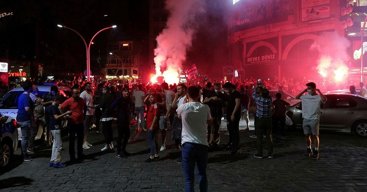 Bordo-mavili taraftarlar, maçın hemen ardından meydana koşarak final sevincini yaşadılar. Koronavirüs tehdidinin sürdüğü günlerde Trabzon Emniyeti de hemen gerekli önlemleri aldı. Polis araçlarından, sosyal mesafeye uyulması ve maske takılması yönünde anonslar yapıldı.