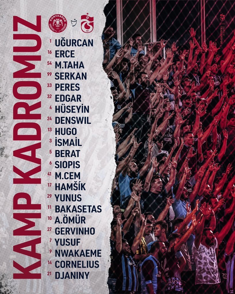 Trabzonspor Kulübü, Süper Lig'in 6. haftasında oynayacağı maç kadrosu belli oldu.