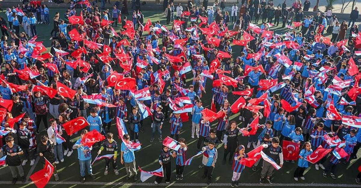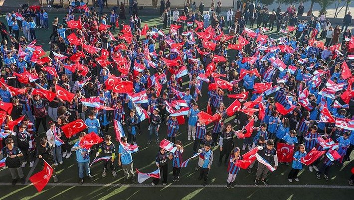 Beşikdüzü lçesinde 2022-23 eğitim öğretim yılının birinci dönemini geride bırakan öğrencilere, karneleri Trabzonspor marşları eşliğinde verildi. Şehit Öğretmen Gürhan Yardım Ortaokulu bahçesindeki karne törenine bordomavi formalar ve bayraklarla katılan öğrenciler heyecanlı anlar yaşadı. Türk bayrakları eşliğinde Trabzonspor marşları söyleyen öğrencilere, öğretmenleri ve aileleri de eşlik etti.