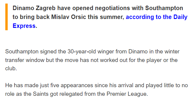 Inside Futbol'un, Daily Express'de derlediği haberde futbolcu için eski kulübü Dinamo Zagrep'in devreye girdiği aktarıldı. Hırvat ekibinin oyuncunu kulübe geri getirmek için Southampton ile müzakerelere başladığı vurgulandı.