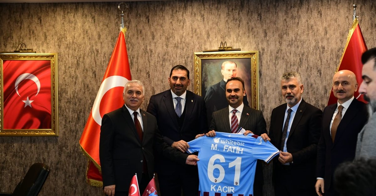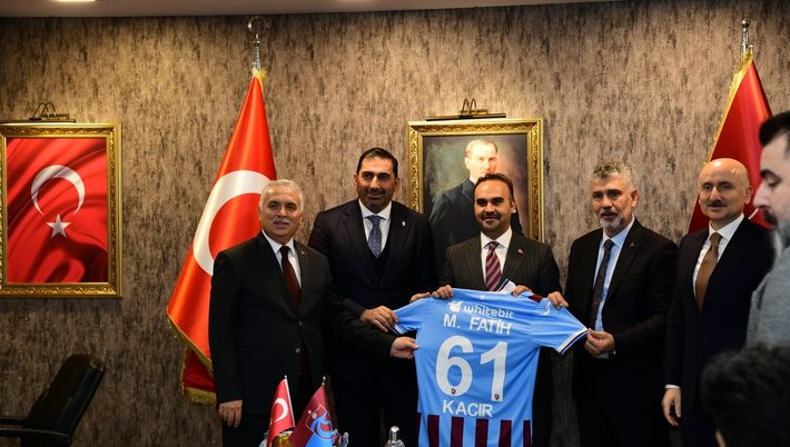Sanayi ve Teknoloji Bakanı Mehmet Fatih Kacır, Trabzonspor Valisi Aziz Yıldırım, Trabzon Büyükşehir Belediye Başkanı Murat Zorluoğlu, beraberindeki AK Parti Trabzon Milletvekilleri Adil Karaismailoğlu ve Yılmaz Büyükaydın ile Trabzonspor'u ziyaret etti. Başkan Yardımcısı Zeyyad Kafkas ve yöneticilerin ev sahipliğini yaptığı ziyaret, karşılıklı fikir alışverişi şeklinde dostane ortamda geçti.