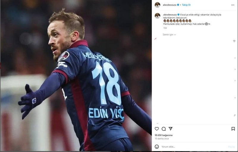 Trabzonspor'un Boşnak yıldız Edin Visca, tarihe geçti... Enis Destan'ın attığı golün asistini yapan tecrübeli futbolcu, Süper Lig'deki asist sayısını 109'a çıkardı ve 108 asisti bulunan Fenerbahçe efsanesi Alex de Souza'yı geride bırakıp zirveye çıktı. Visca, Samsunspor karşılaşmasında rekoru egale etmiş, Antalya deplasmanında ise asist yapmamıştı. 2011'den bu yana Türkiye'de forma giyen yıldız oyuncu, rekorunu daha da geliştirecek.