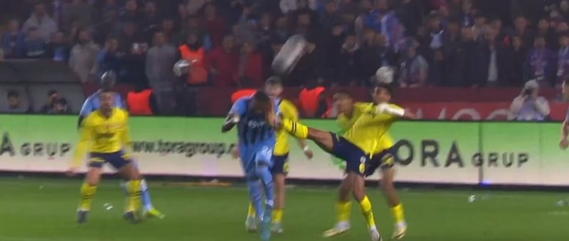 Bordo-mavililer, karşılaşmanın 76. dakikasında penaltı kazandı. Sarı-lacivertlilerde Alexander Djiku'nun ceza sahası içinde Denswil'e yaptığı müdahale sonrası Halil Umut Meler beyaz noktayı gösterdi.
