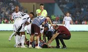 Felix Uduokhai ile çıktığı kafa topu mücadelesinde Cihan Çanak hareketsiz bir şekilde yerde kaldı, sağlık ekipleri sahaya girdi.