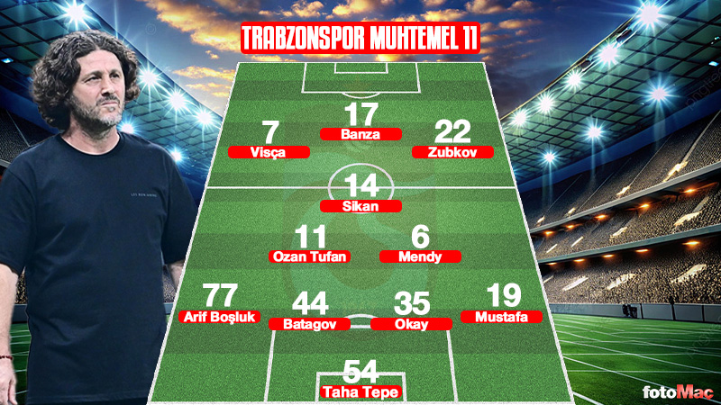 Trabzonspor: Taha, Mustafa, Okay, Batagov, Arif, Mendy, Ozan Tufan, Sikan, Zubkov, Vişça, Banza
