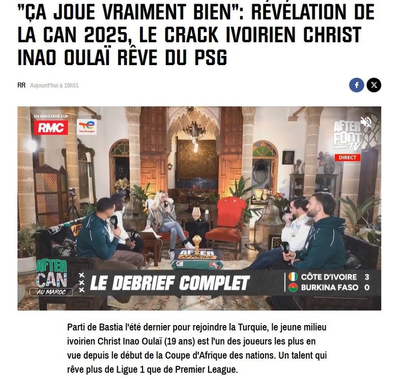 Oulai, Bideew Sports'a yaptığı açıklamada, "Bazı insanlar bunu garip buluyor ama ben Ligue 1'i seviyorum. Premier Lig'e ilgi duymuyorum. Ligue 1'i seviyorum. Bugün beni hayal kurmaya iten kulüp PSG. Onları seviyorum. Bu yeni PSG gerçekten çok iyi oynuyor." ifadelerini kullandı.