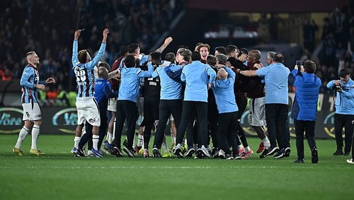 Karşılaşmanın son düdüğüyle birlikte Trabzonsporlu futbolcular büyük bir coşku yaşadı. Futbolcular tribünleri tek tek gezerek G.Saray galibiyetini kutladı.