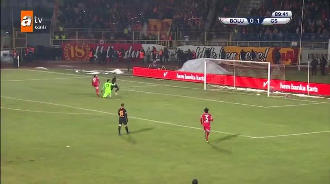 85. dakikada Boluspor tarafından kullanılan korner vuruşuyla Galatasaray ceza sahasında karambol oluştu. Oluşan karambol esnasında fileye giden topu Galatasaraylı futbolcular çizgiden çıkartarak uzaklaştırdı.