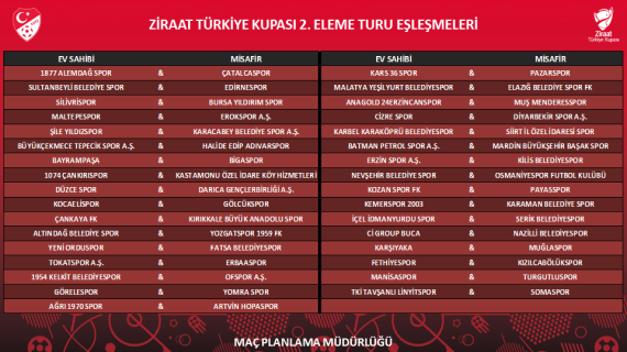 Turkuvaz Medya'nın yayıncısı olduğu Ziraat Türkiye Kupası'nda 2. tur eşleşmeleri yapılan kura çekimiyle belli oldu.