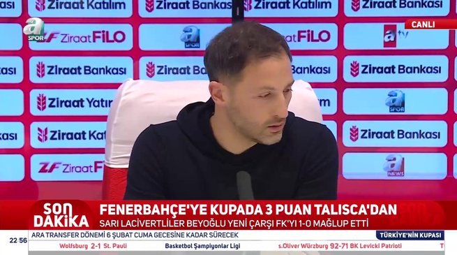 Ziraat Türkiye Kupası C Grubu 2. hafta mücadelesinde Fenerbahçe, deplasmanda Beyoğlu Yeni Çarşı Spor'u 1-0 mağlup ederek üç puanı hanesine yazdırdı. Karşılaşmanın ardından sarı-lacivertlilerin teknik direktörü Domenico Tedesco basın mensuplarının sorularını yanıtladı.