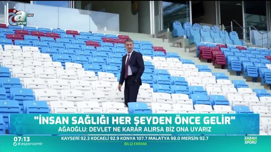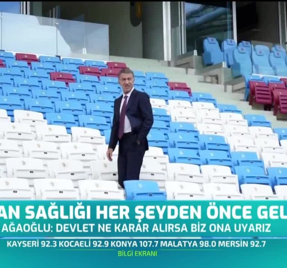 Trabzonspor Başkanı Ahmet Ağaoğlu, koronavirüs nedeniyle liglerin ertelenmesi hakkında açıklamalarda bulundu. Ağaoğlu, "Ne karar alınırsa ona uyulmalı ve uygulanması için de destek olunmalı" açıklaması yaparken, “2-3 gündür kulüpler olarak ertelenme konusunu konuşuyorduk. İnsan sağlığı her şeyden önce gelir. Devlet ne karar alırsa biz ona uyarız. Uymakla da kalmaz, uygulanmasına da yardımcı oluruz. Çünkü milletin sağlığının kontrolü devlettedir. Devlete şöyle olursa böyle olur, böyle olursa şöyle olur diye şart koşmayız. Toplumun doğrusu, bireylerin doğrusundan önemli” diye konuştu.