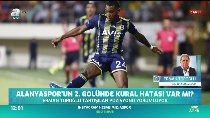Süper Lig'in 4. haftasında oynan Aytemiz Alanyaspor - Fenerbahçe maçında Akdeniz ekibinin bulduğu 2. golde kural hatası olduğu iddia edilmişti. Konuyla ilgili görüşlerini Spor Ajansı programında paylaşan A Spor yorumcusu Erman Toroğlu, "Alanyaspor'un ikinci golünün kural hatasıyla uzaktan yakından alakası yok" dedi.