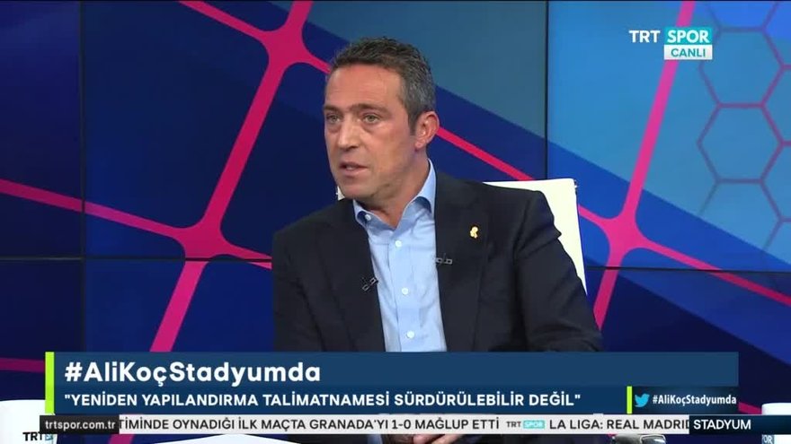 TRT Spor'da yayınlanan Stadyum programına konuk olan Fenerbahçe Başkanı Ali Koç gündem ile alakalalı açıklamalarda bulundu. Transfer ve limit konusuna da değinen Koç, "Limitlerle alakalı bize esneklik sağlanmadığı sürece bizim transfer açısından B planımız yok" diye konuştu.