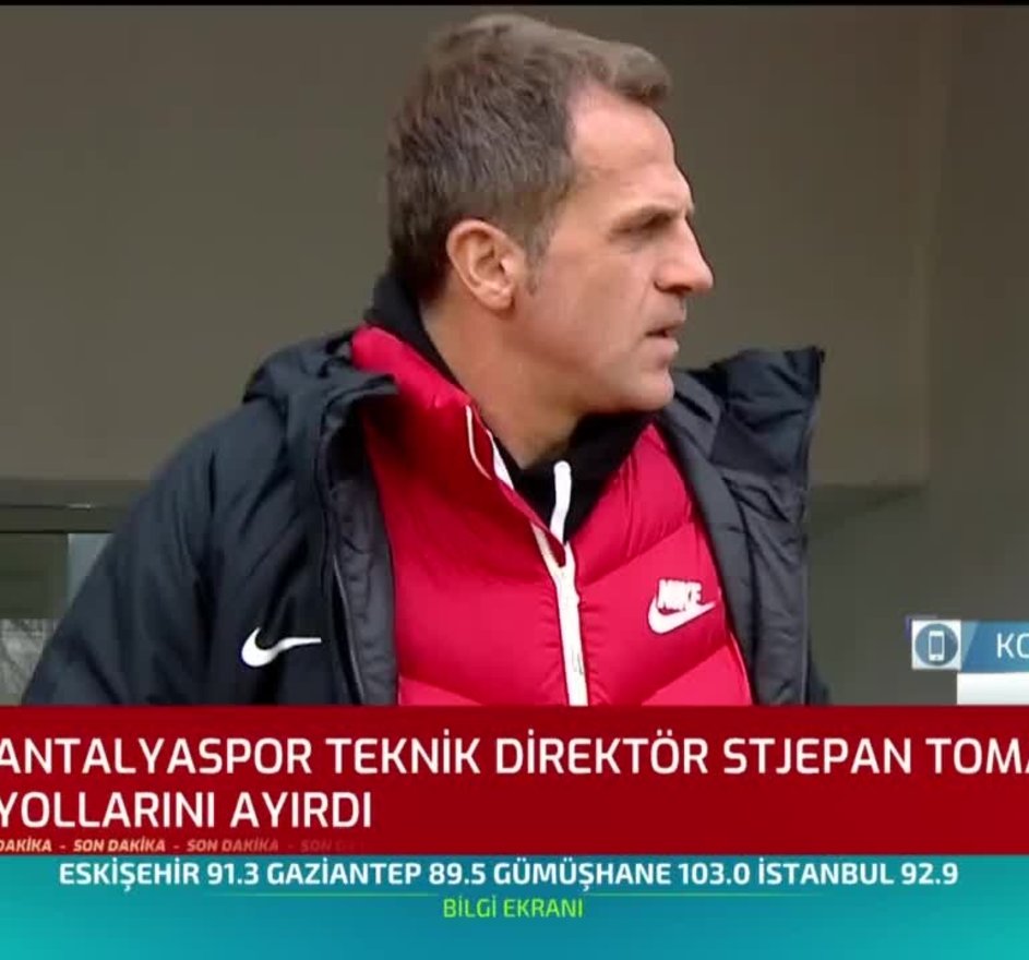 Süper Lig ekiplerinden Antalyaspor, Bülent Korkmaz'ın yerine getirilen Hırvat teknik adam Stjepan Tomas'ın görevine son verdi. Konuyla ilgili detayları aktaran A Spor editörü Koray Baloğlu, Antalya temsilcisinin teknik direktörlük için ilk adayının Hikmet Karaman olduğunu söyledi.