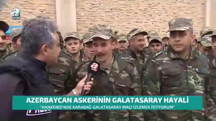Önce İstiklal Marşı'ndan bir bölüm okuyan asker, daha sonra en büyük hayalinin Karabağ'ın başkenti Hankendi'nde Karabağ-Galatasaray maçını izlemek olduğunu söyledi.