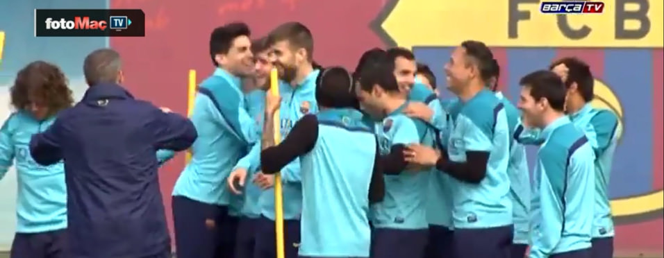 Barcelona'lı yıldızlar, antrenmanda neşeli anlar yaşadı.