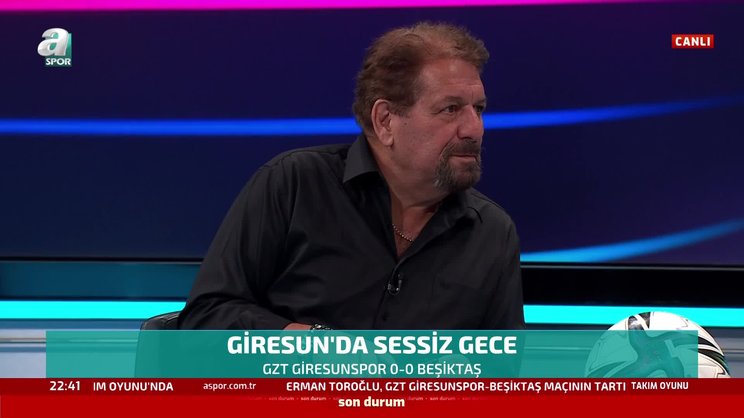 Beşiktaş haberleri: Spor Toto Süper Lig'in 33. haftasında Beşiktaş deplasmanda Giresunspor ile karşı karşıya geldi. Zorlu mücadele golsüz tamamlandı. A Spor yorumcusu Erman Toroğlu, Beşiktaşlı oyuncuları eleştirdi. Toroğlu, "Maç bitiminde Beşitkaş'tan 8 futbolcu hakemin başına dikildiler ve neden daha oynatmadın dediler. Daha oynatsaydı ne olurdu? Oynadıkları sürede ne yaptılar? Hakem mi suçluydu?" dedi.