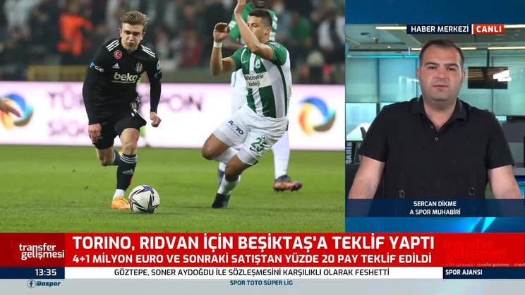 Son dakika Beşiktaş transfer haberleri... İtalyan ekibi Torino, Beşiktaş'ın genç futbolcusu Rıdvan Yılmaz için 4 artı 1 milyon euro ve sonraki satıştan yüzde 20 pay içeren bir resmi teklifte bulundu. Detayları A Spor muhabiri Sercan Dikme aktardı.