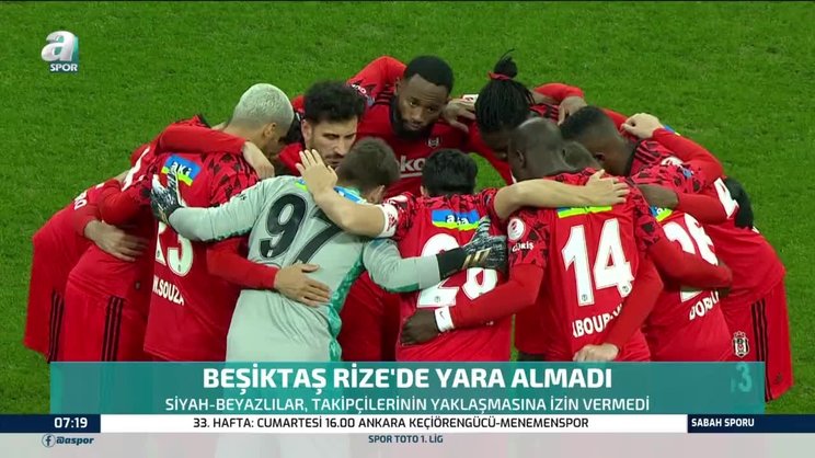 Spor Toto Süper Lig'in 38. haftasında deplasmanda Çaykur Rizespor'u 3-2 mağlup eden lider Beşiktaş, takipçileri Fenerbahçe ve Galatasaray ile puan farkının kapanmasına izin vermedi.
